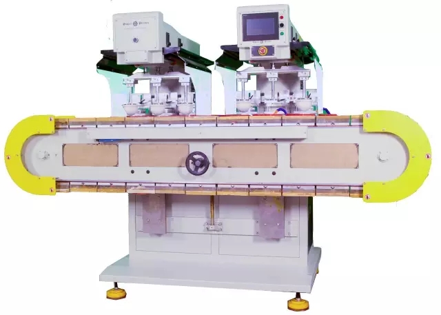 六色移印机,采用齿轮式坦克输送带工作台;
